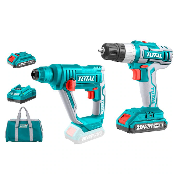 Ciocanul Rotopercutor TOTAL cu Acumulator, 20V, 1.5J îți oferă combinația perfectă între putere, mobilitate și confort.