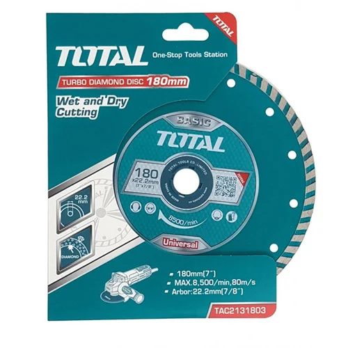 Cu un diametru de 180 mm, acest disc este perfect compatibil cu o gamă largă de mașini de tăiat materiale și polizoare unghiulare de putere medie spre mare. Această dimensiune permite tăierea eficientă a blocurilor, bordurilor, plăcilor și a altor componente din beton, oferind un echilibru excelent între adâncimea de tăiere și manevrabilitate.