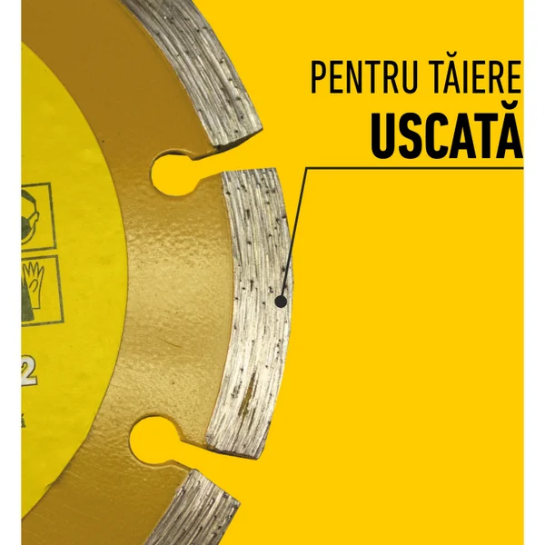 Prezența segmentelor diamantate pe circumferința discului permite o tăiere agresivă și eficientă, chiar și în cele mai dure materiale. Spațiile dintre segmente (fantele) asigură o răcire optimă a lamei în timpul tăierii uscate și facilitează evacuarea prafului și a reziduurilor, prevenind supraîncălzirea și prelungind durata de viață a discului.