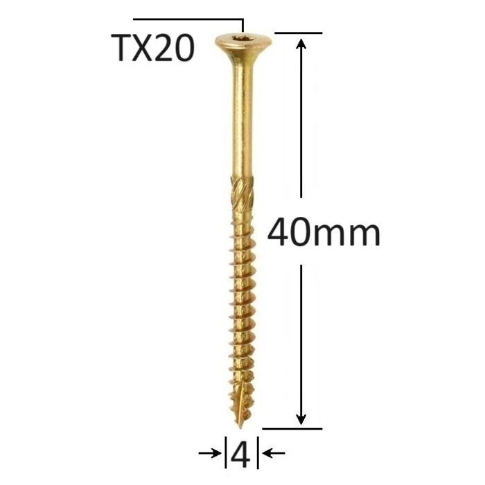 Cu un diametru de 4.0 mm și o lungime de 40 mm, acest șurub este perfect adaptat pentru îmbinări puternice și discrete în elemente de lemn de grosime mică, cum ar fi șipci subțiri, profile, lambriuri, plinte, plăci din PAL, MDF sau lemn masiv de dimensiuni reduse. Este ideal pentru fixarea componentelor de mobilier, a ramelor, a placărilor decorative sau pentru alte aplicații unde este necesară o fixare solidă, dar cu o penetrare mai mică.