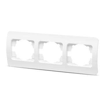 Concepută pentru a găzdui trei module (prize sau întrerupătoare) într-o singură ramă, această soluție este extrem de eficientă în optimizarea spațiului pe perete. Permite instalarea a trei funcții electrice alăturate (ex: o priză triplă, o priză dublă și un întrerupător, trei întrerupătoare separate), reducând semnificativ numărul de rame individuale și oferind un aspect extrem de ordonat și compact instalației, ideal pentru zonele cu multe necesități de conectare.
