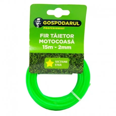 Firul cu profil în formă de stea este proiectat pentru toate tipurile de motoare și capete de trimmer compatibile cu diametrul specificat, ceea ce îl face universal și ușor de folosit în aproape orice context de grădinărit.