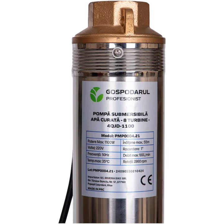 Această pompă submersibilă Gospodarul Profesionist 4QJD-11 este o alegere excelentă pentru cei care caută o soluție puternică, durabilă și eficientă energetic pentru alimentarea cu apă curată din surse adânci, oferind fiabilitate pentru anii ce vin.