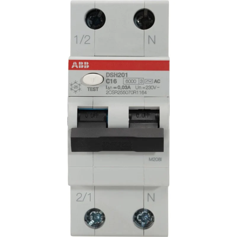 Întrerupător diferențial ABB 16A, 1P+N, curba C, 6kA, 30mA – protecție eficientă împotriva scurgerilor de curent și electrocutării.