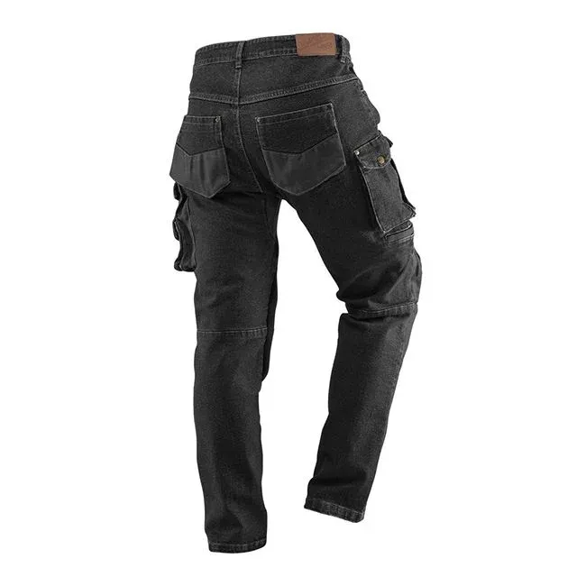 Chiar dacă sunt din denim, acești pantaloni sunt proiectați cu funcționalități specifice îmbrăcămintei de lucru: