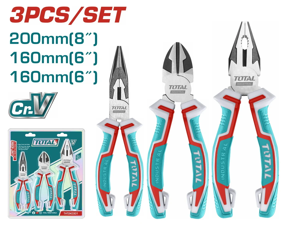 <p><strong>Setul de clești TOTAL Industrial</strong> conține 3 clești tăietori de diferite dimensiuni, concepuți pentru o varietate de lucrări de precizie și duritate, ideale în electricitate, construcții și reparații generale. Gama Industrial garantează performanță ridicată și durabilitate pe termen lung.</p>