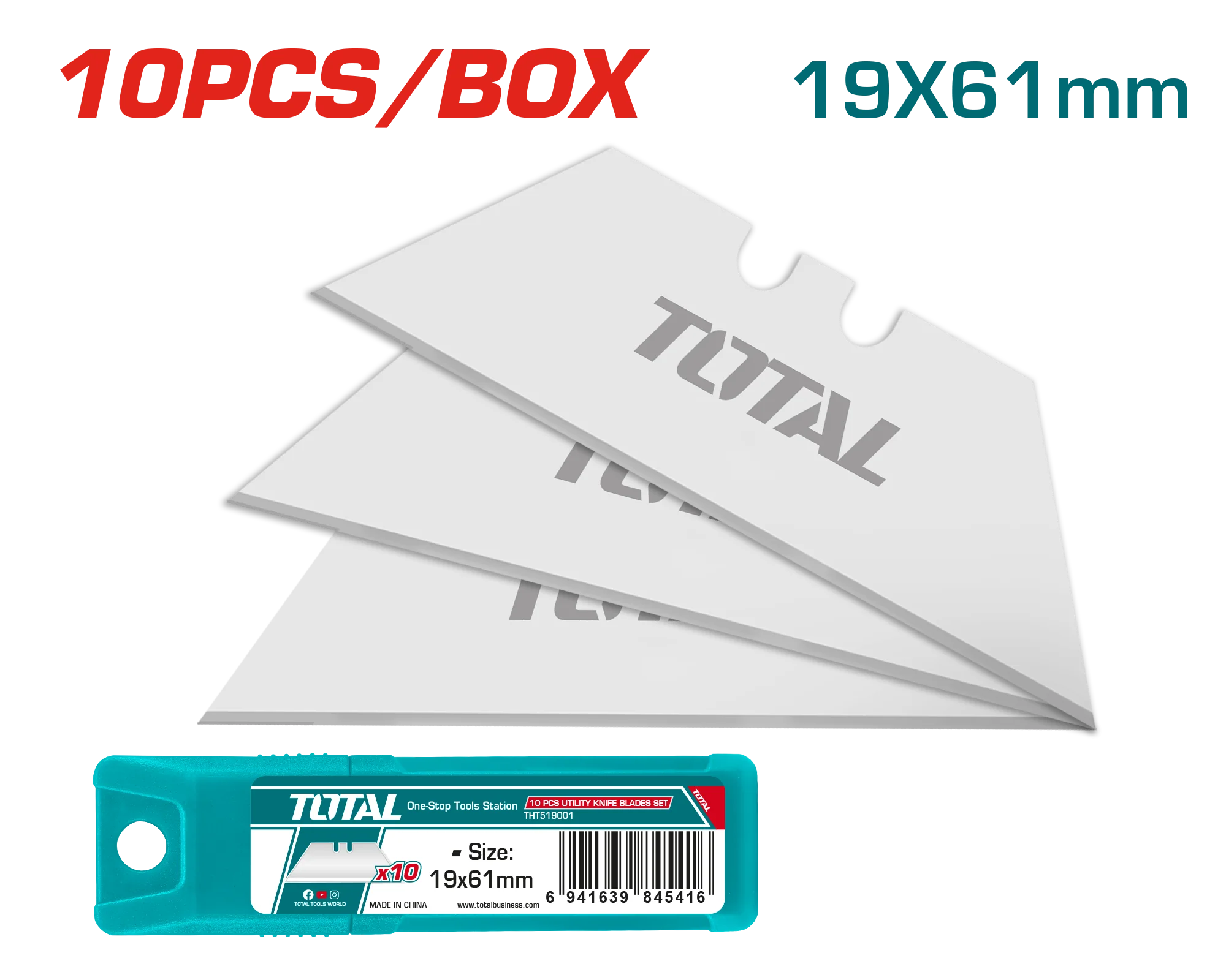 Ai nevoie de lame de cutter de încredere, care să rămână ascuțite pentru tăieri precise și sigure? Setul de 10 bucăți lame cutter TOTAL de 61mm x 19mm este alegerea ideală pentru orice atelier, proiect de bricolaj sau sarcini casnice! Fabricate din materiale de înaltă calitate, aceste lame universale asigură o performanță superioară și o durată de viață extinsă. Sunt perfecte pentru tăierea eficientă a cartonului, hârtiei, foliei, tapetului și a multor altor materiale, oriunde în România.